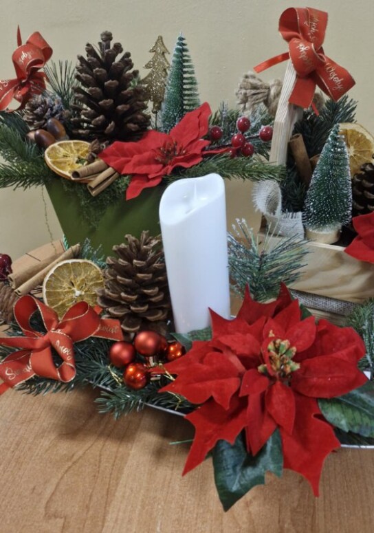 Osadzeni powyżej 60. roku życia, uczestniczący w zajęciach realizowanych w ramach projektu Feniks, wykonali kolorową ilustrację przeznaczoną do dziecięcego kącika widzeń w Areszcie Śledczym. Dodatkowo w trakcie warsztatów stworzyli świąteczne stroiki, które wzbogacą atmosferę nadchodzących świąt.