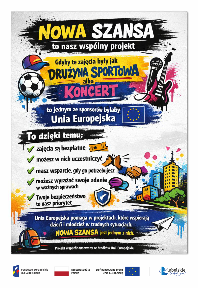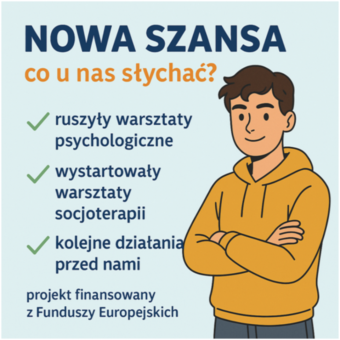 W związku z realizacją projektu FELU.08.08-IZ.00-0014/24 „NOWA SZANSA – integracja społeczna i zdrowotna dzieci i młodzieży doświadczających przemocy, w tym przemocy w rodzinie” współfinansowanego ze środków Europejskiego Funduszu Społecznego Plus informujemy o...